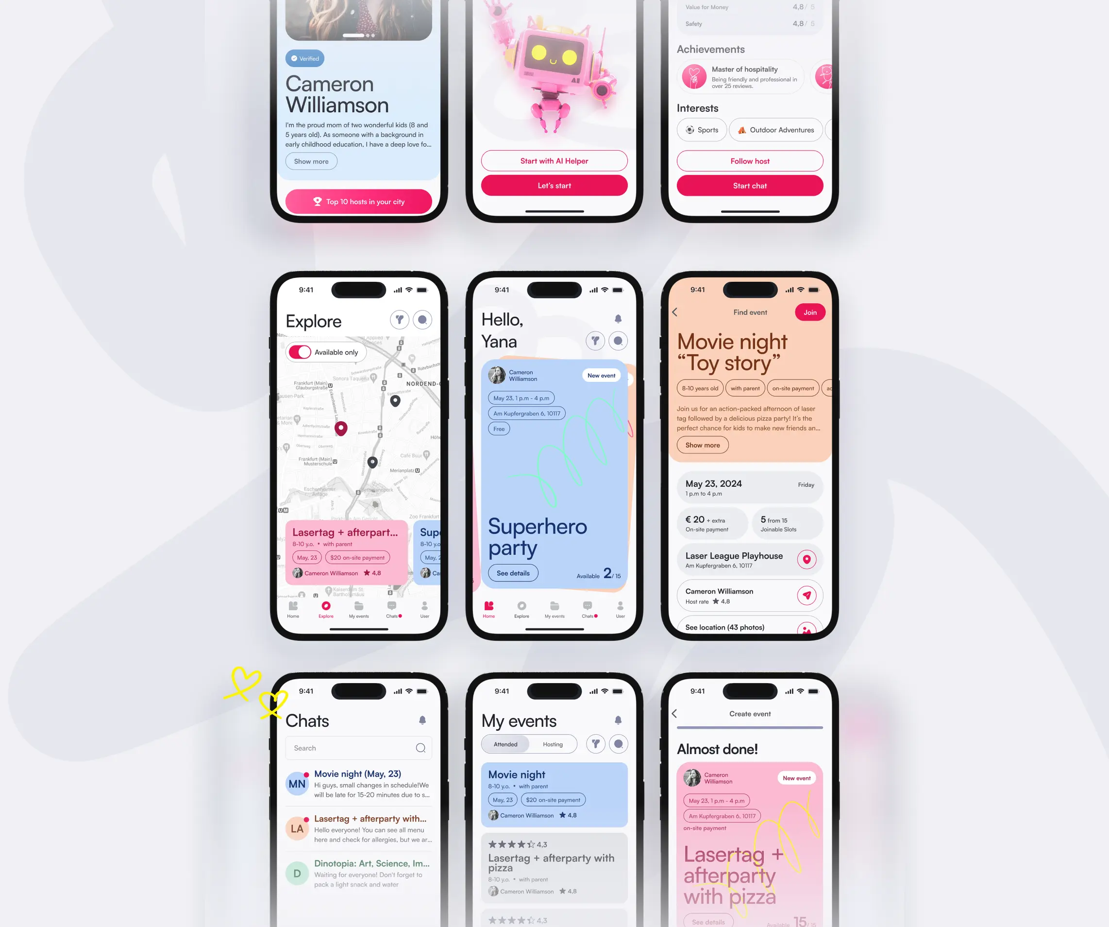 Find & Join helps parents commit in under 30 seconds through event cards that reveal hosts rating, eliminating decision paralysis while building trust.